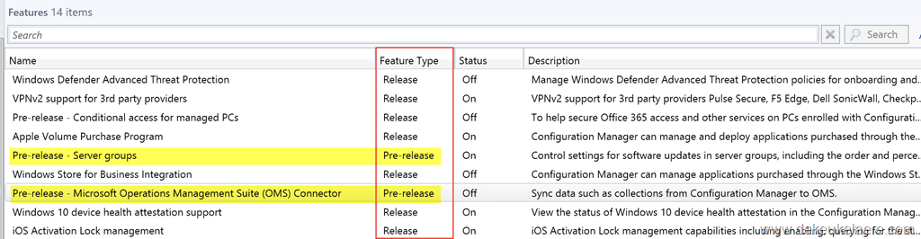 Note 1: yes – I did also notice the anomaly with the Conditional Access for Managed PC’s feature. Not sure why the name indicates pre-release and the feature type says release.